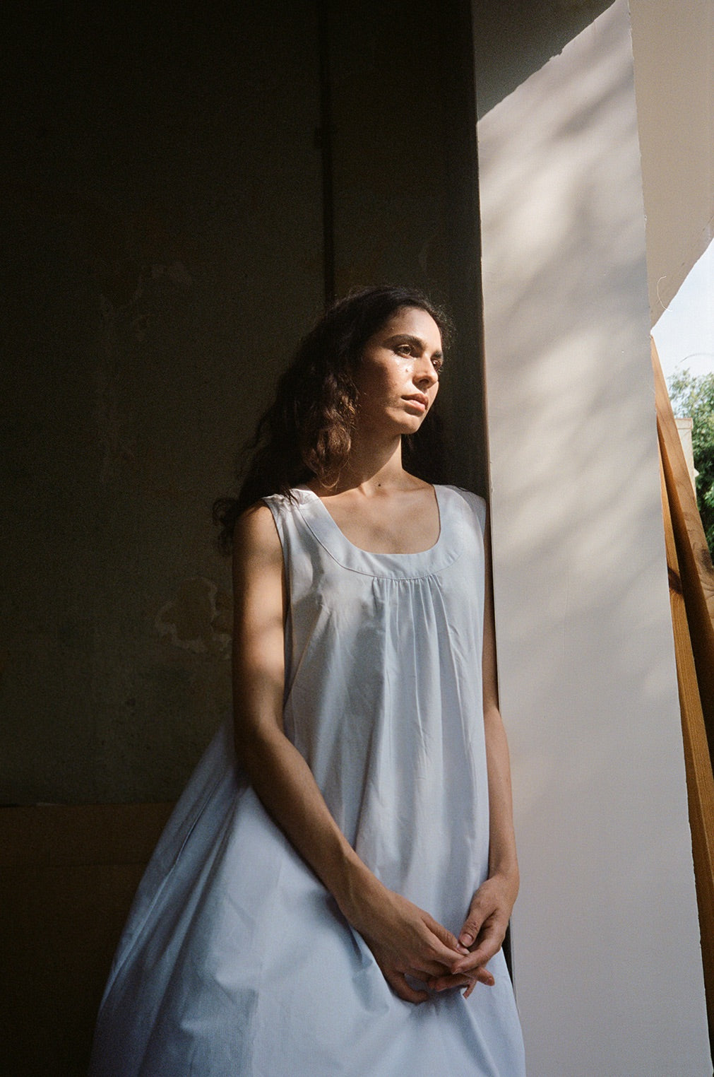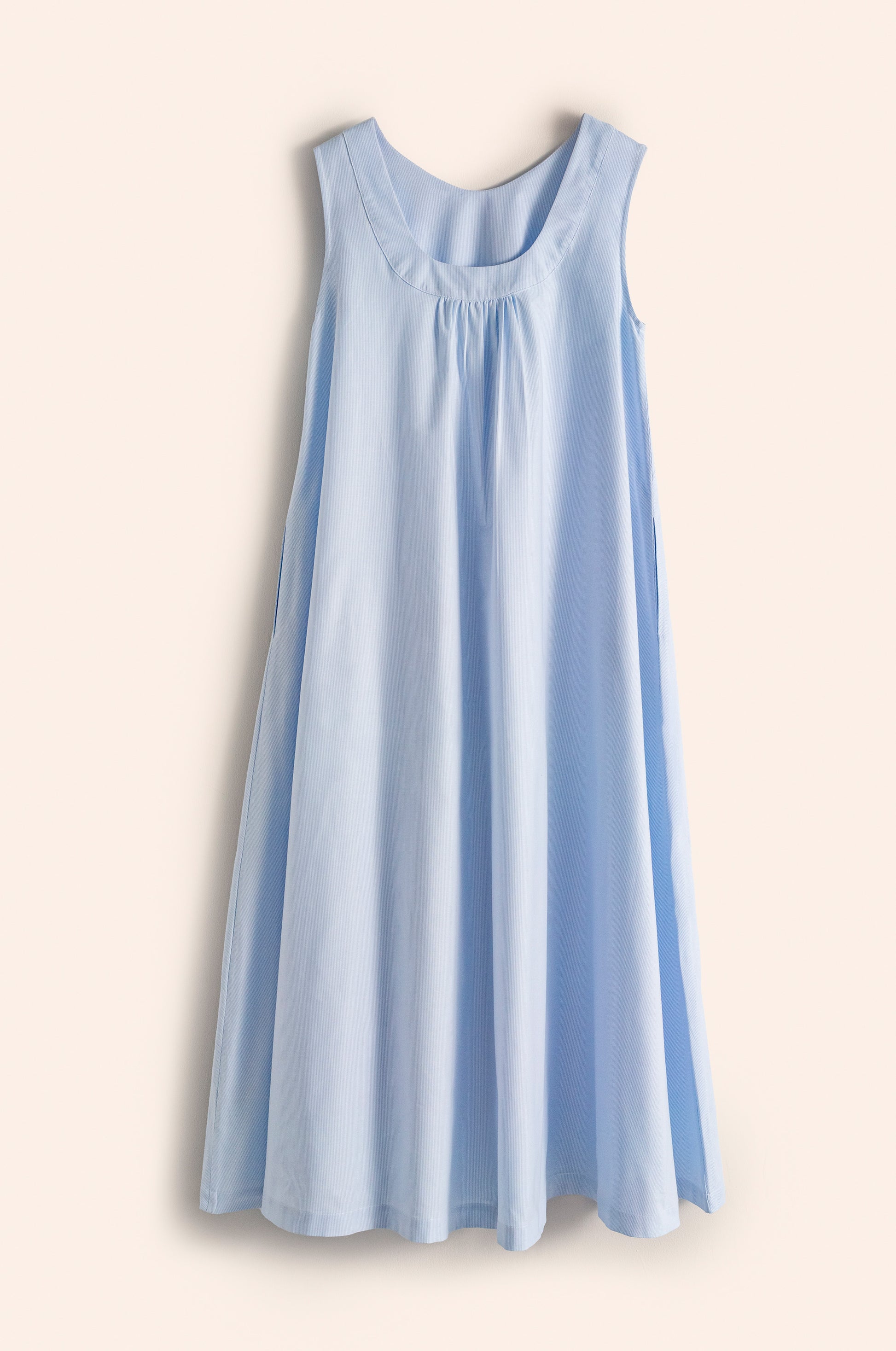 Named after Tali's grandmother who in fact, designed it, this summer dress is airy, comfortable, and irresistible according to some of our customers. This model can be also be worn front to back for a higher neckline. It is cut wide and features two side pockets.