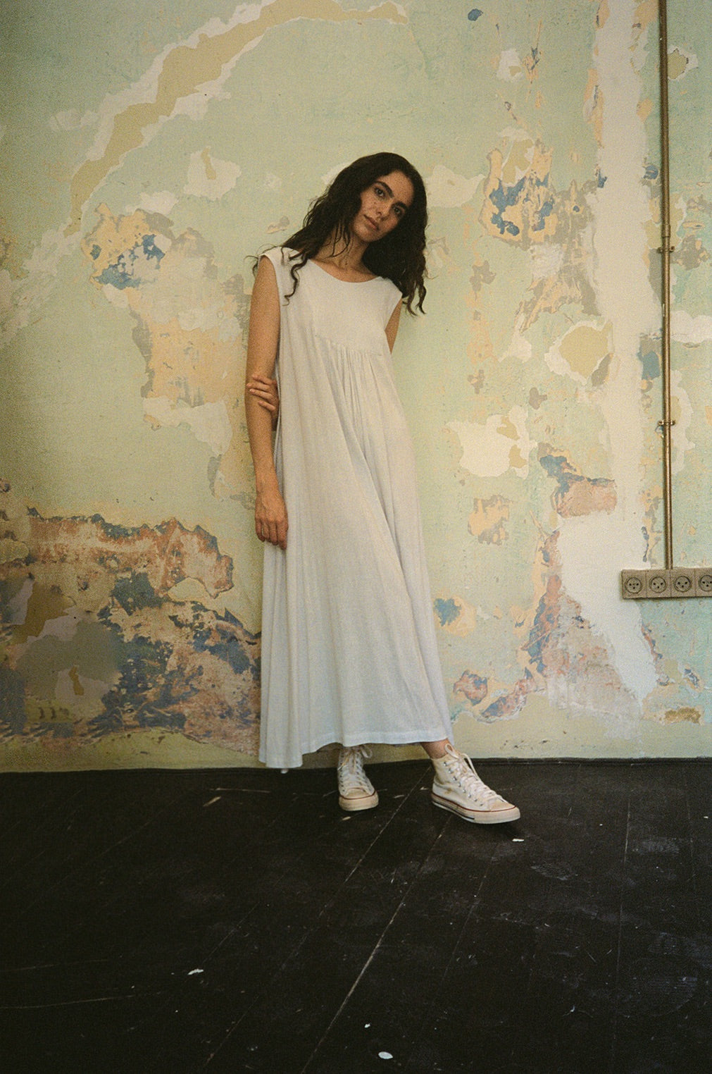 Named after Tali's grandmother who in fact, designed it, this summer dress is airy, comfortable, and irresistible according to some of our customers. This model can be also be worn front to back for a higher neckline. It is cut wide and features two side pockets.