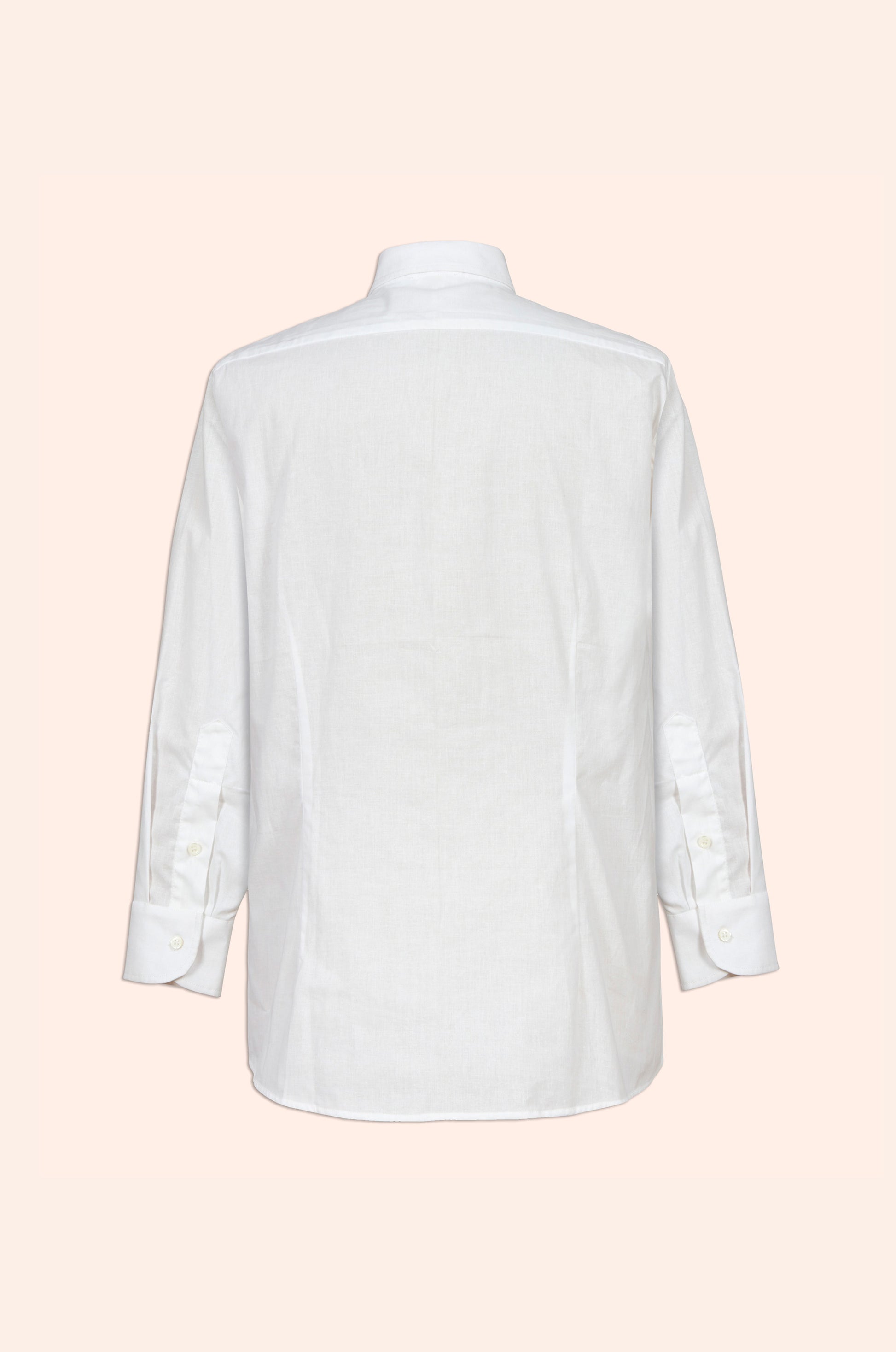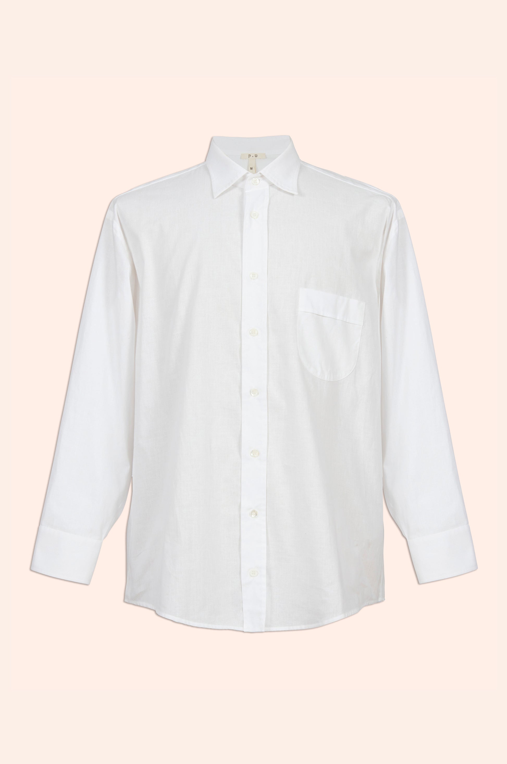 The Passeist shirt is our version of an endearingly old school men's shirt with a wider relaxed fit. It's constructed with a stiff collar, a rounded pocket and a raised placket. Two darts are added in the back introducing a bit of gentle shaping to this otherwise wider cut.