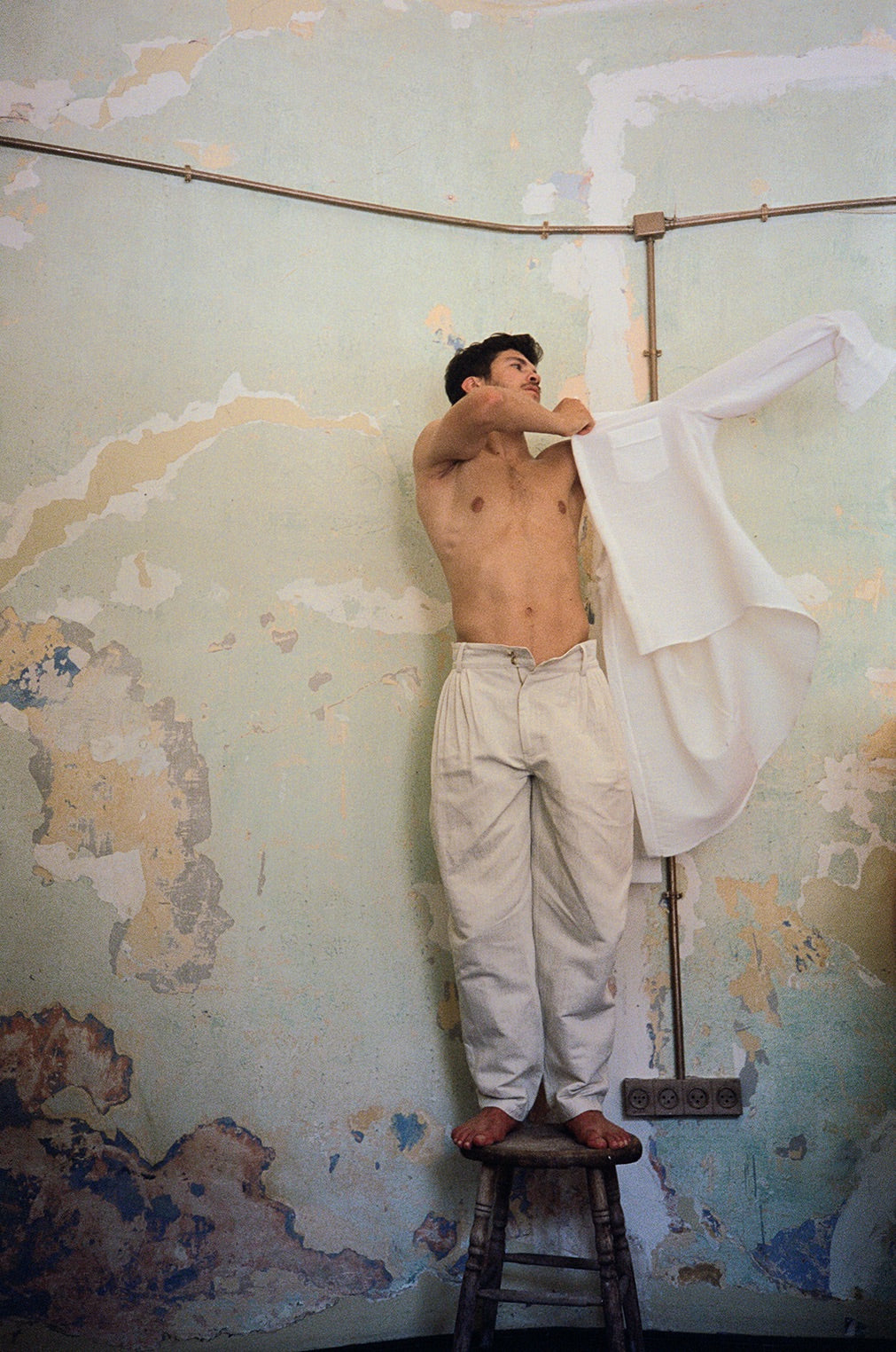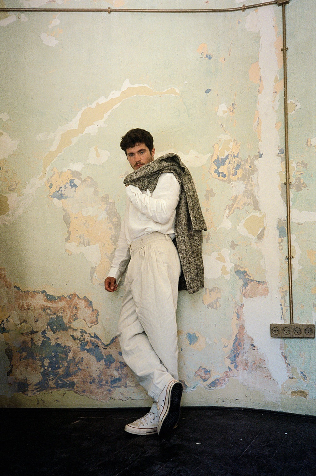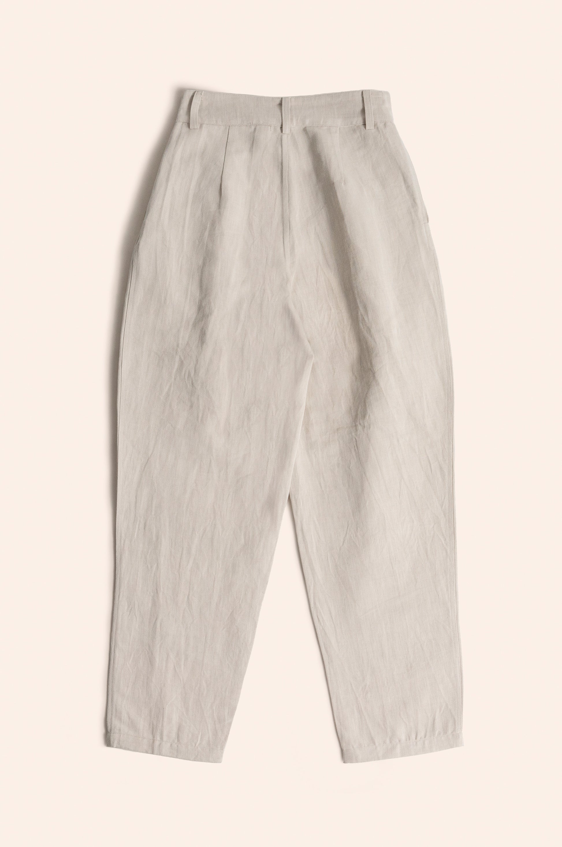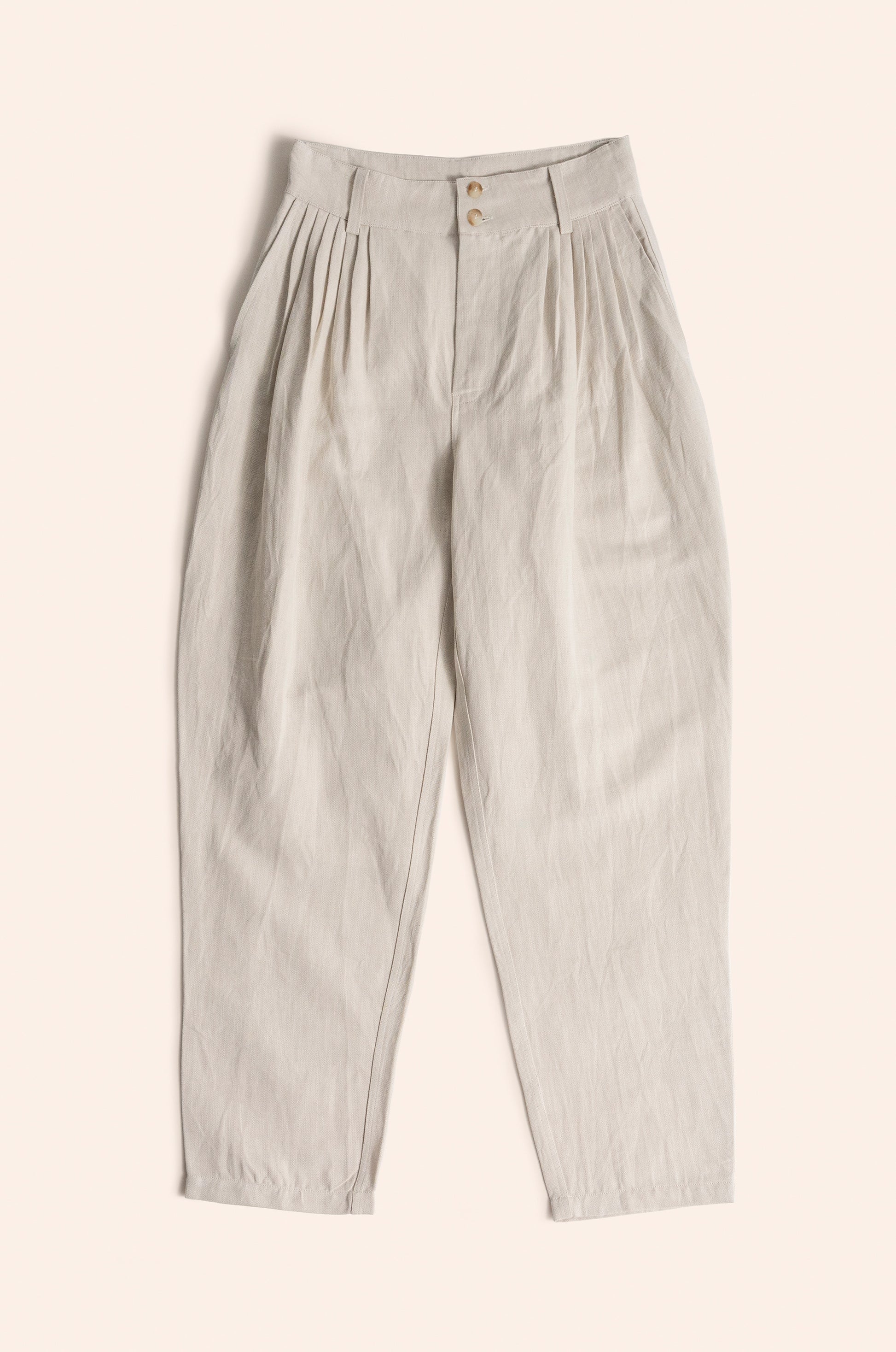 Named "Waves" for the shape of their intricate front pleats, these mid-waist pants follow a 1980s pattern from our archives and include a curved belt for maximal comfort and deep side pockets.